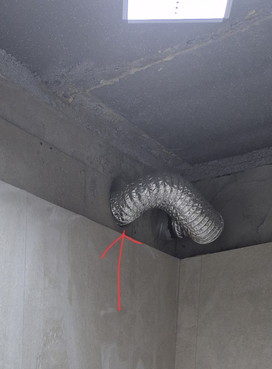 * 첫번째 사진에는 리모델링 공사시 환풍기 환기호스를 오픈된 배관 쪽으로 집어 넣어놓은 걸로, 빨간색 화살표 표시가 현재 오픈되어 있는 배관 부분입니다.