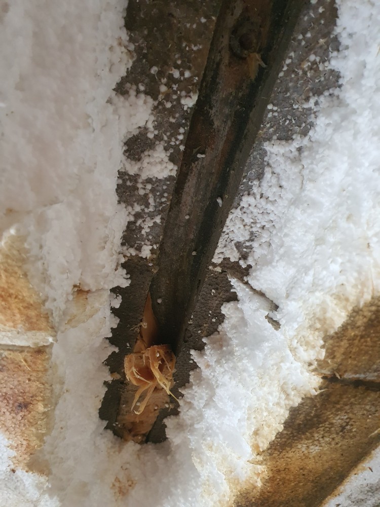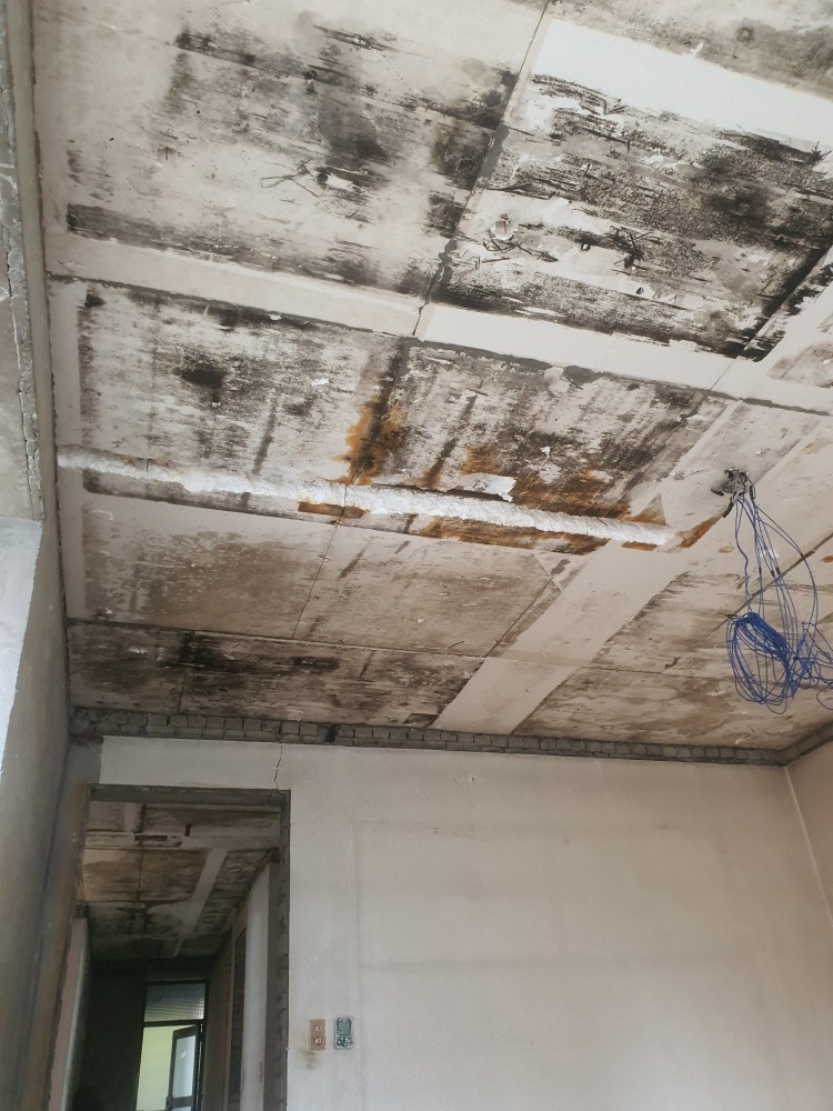 달대에서 창호쪽에서 10센치 정도는 괜찮은데 노란색주변  달대중앙 다루끼는 다 젖어있어 제거했습니다.