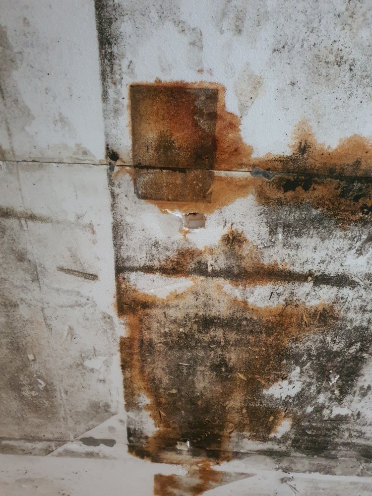 일단은 외부로부터의 유입이고, 바닥은 가운데에 자국이 있는 것은.. 해당 부위가 가장 낮아서 그런 것일 뿐, 외벽 쪽으로의 유입이 맞아 보입니다.