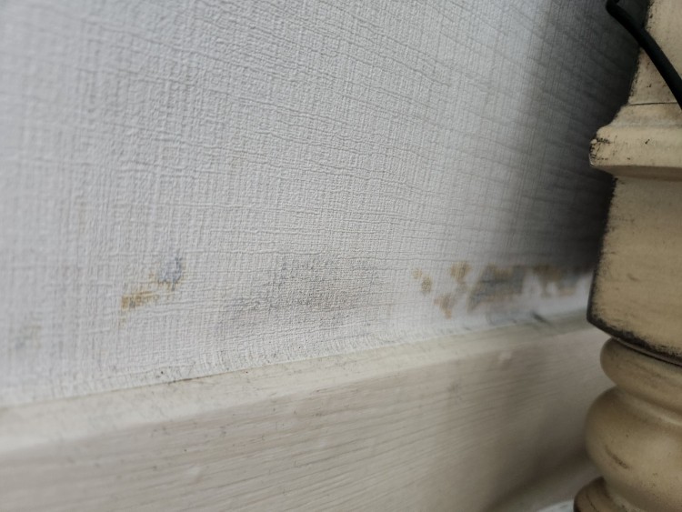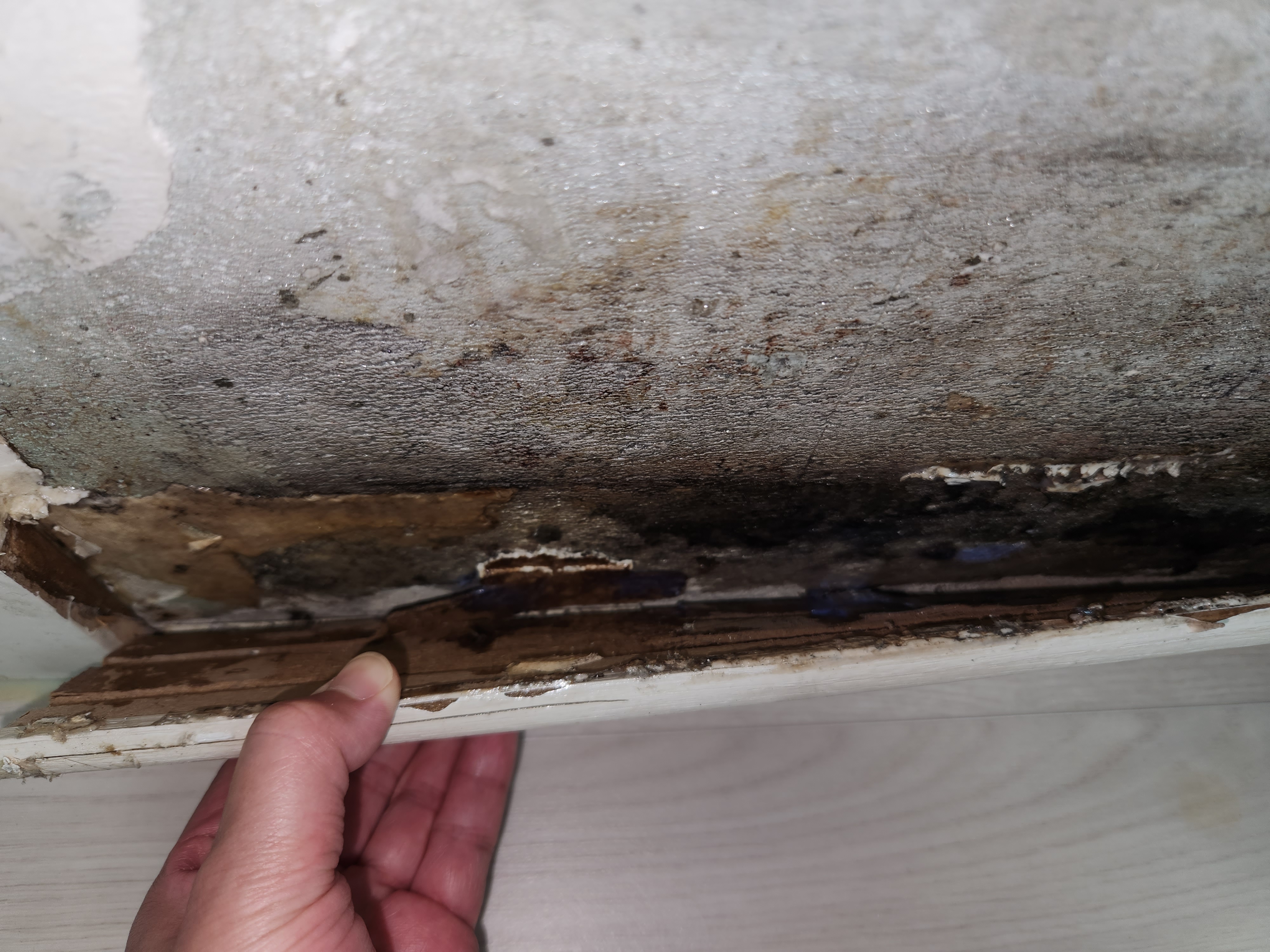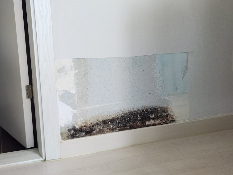 조금씩 계속 커지고 걸레받이 위 벽지에 곰팡이가 핀것같아 벽지 뜯어보니 사진과같이 꽤 많이 퍼진것으로 보입니다