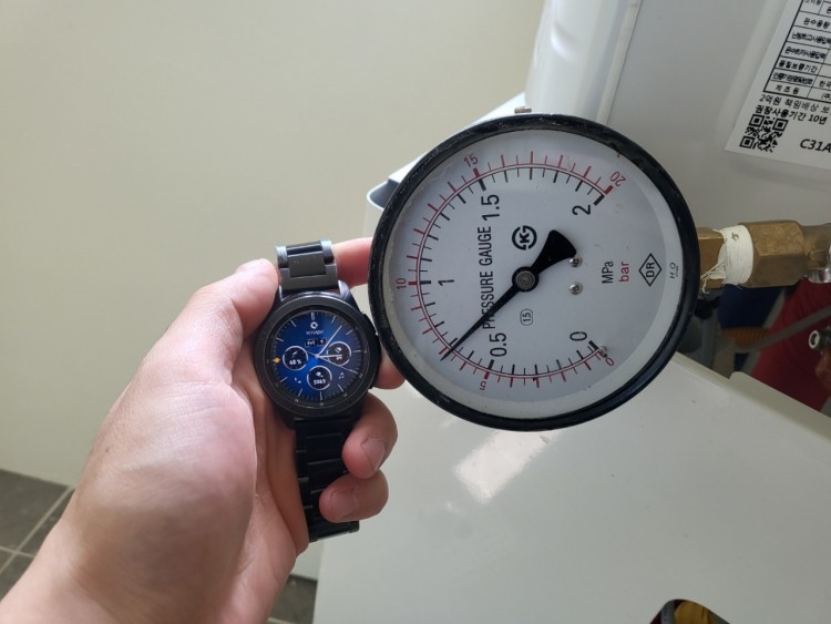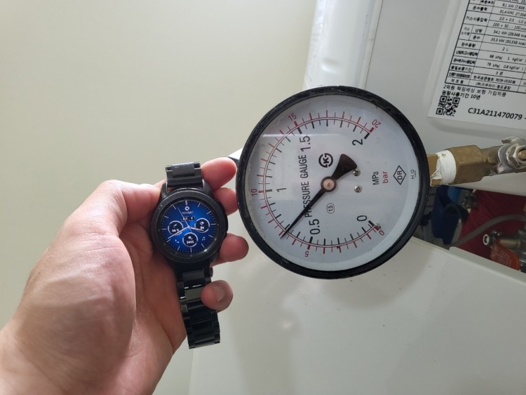 압력계의 사진이 맞다면, 누수는 없는 것으로 보아도 무방합니다.