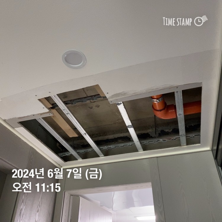 천장을 말리고 재시공하는데 최소 2주는 걸립니다. 오히려 2주이상 충분히 지켜 보면서 말린 후에, 마감을 하는 것을 권해 드립니다.