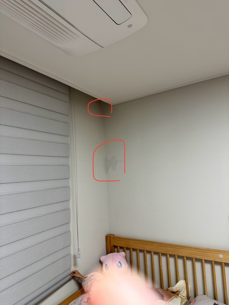 문제의 원인을 찾으려면 마감재와 석고보드를 제거하고 안쪽의 상황을 봐야 하는데, 내키지 않으실 수 있겠으나, 일부라도 절개를 해서 시공사와 함께 확인을 해보시길 권해 드립니다.