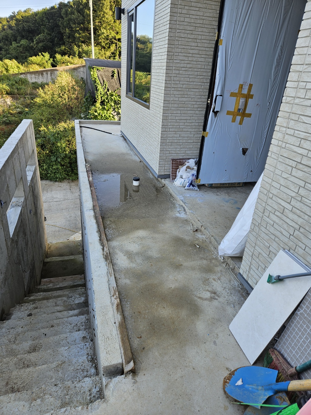 바닥을 파낸곳은 물매를 잡아서 한쪽 끝으로 흐르게끔 작업을 할 예정입니다