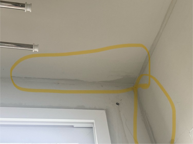 안방 발코니와 실외기실 천장 및 벽 곳곳에 물자국이 생깁니다.