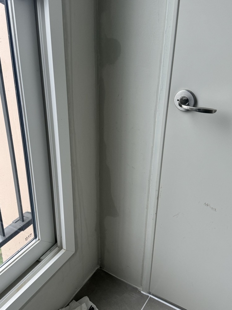 1차 : 창틀 모서리 부분에 실리콘 주입 -> 해결 안됨