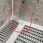 부부욕실 배수구가 수평이 아니라 벽쪽으로 비스듬하게 올라가게 시공되어 있는데요