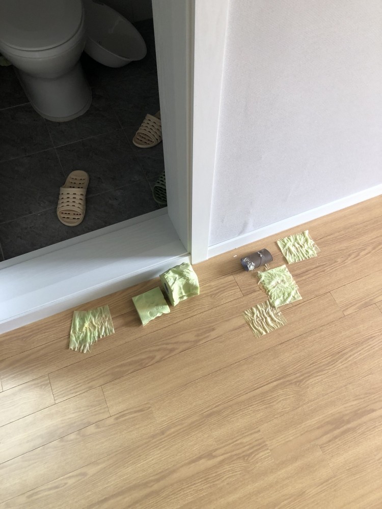 1. 화장실 앞 거실 마루 바닥 틈에서 누수 발생