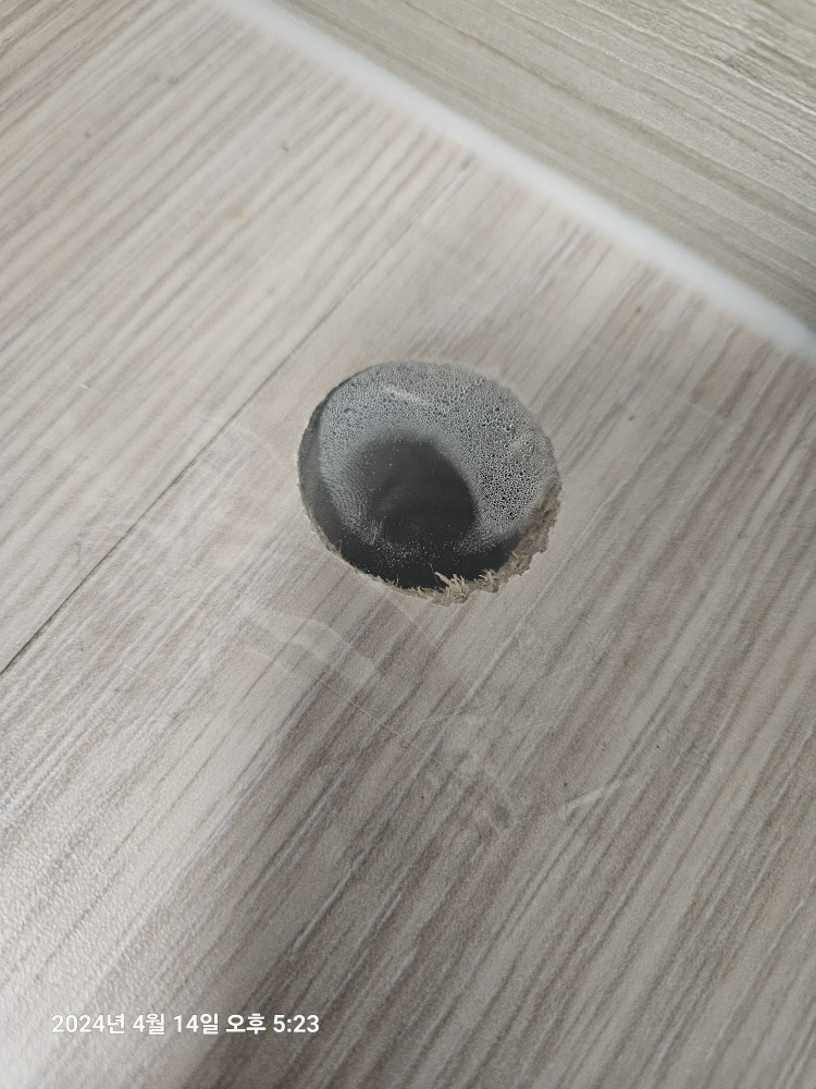 실제로 구멍을 뚫을 당시 잔해에서 습이 있거나 물기가 남아있진않았습니다 .