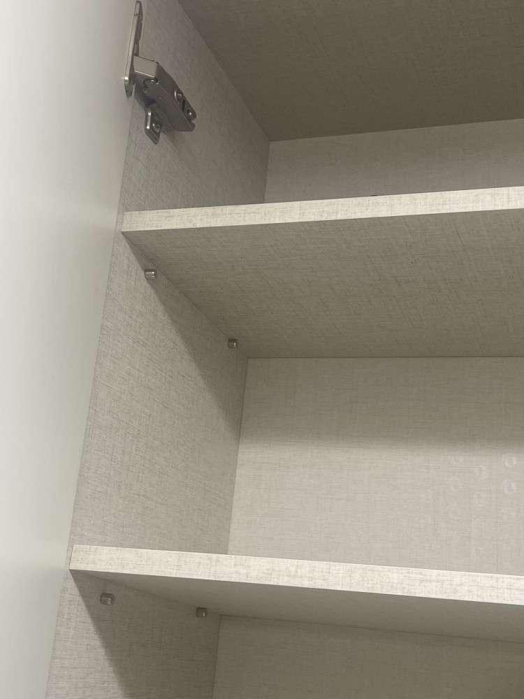 그렇게 대표님은 집에서 떠나셨고, 확인 차 상부장을 열어보니 수평도 맞지않았고, 잘못 못질되어진 곳에 스티커조차 붙여지지않아 너무 마음도 상하고 짜증나 다시 대표님에게 연락드렸더니 금방 내방하시어 수리해주시고 스티커도 붙여주시고 가셨습니다.