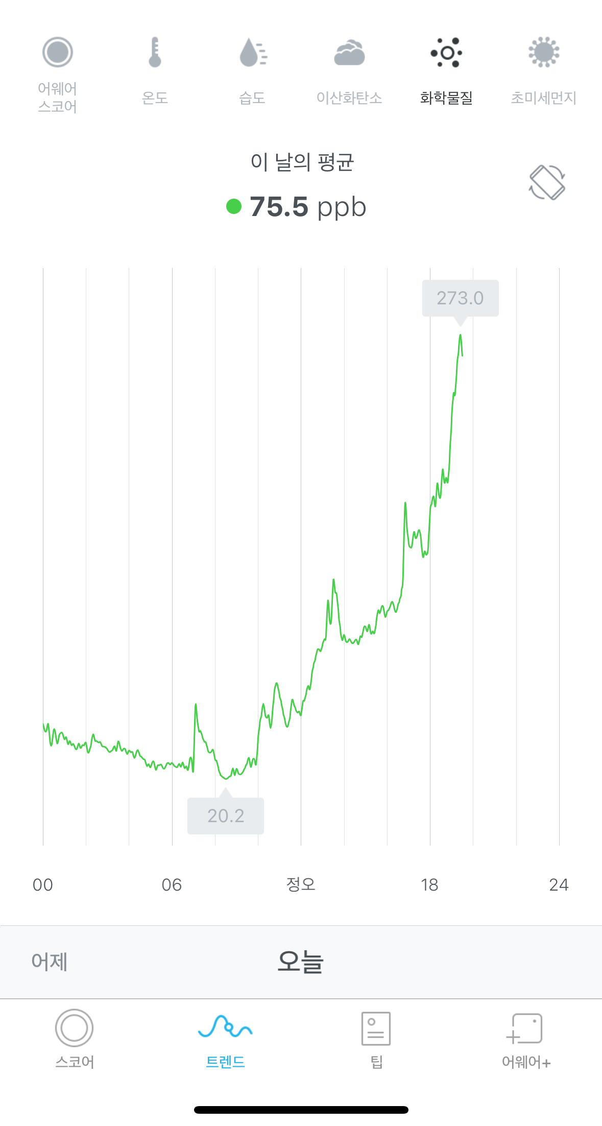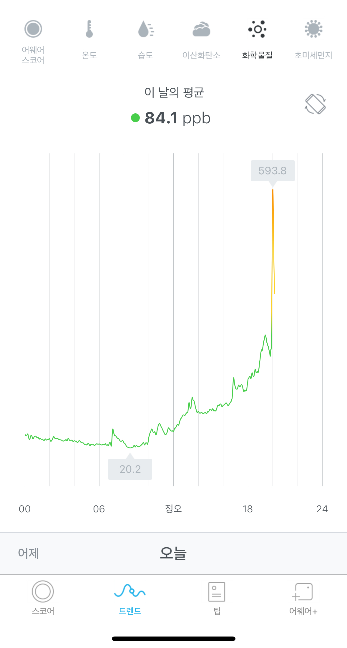 내부에 별 이슈가 없이 tvoc가 올라갑니다
