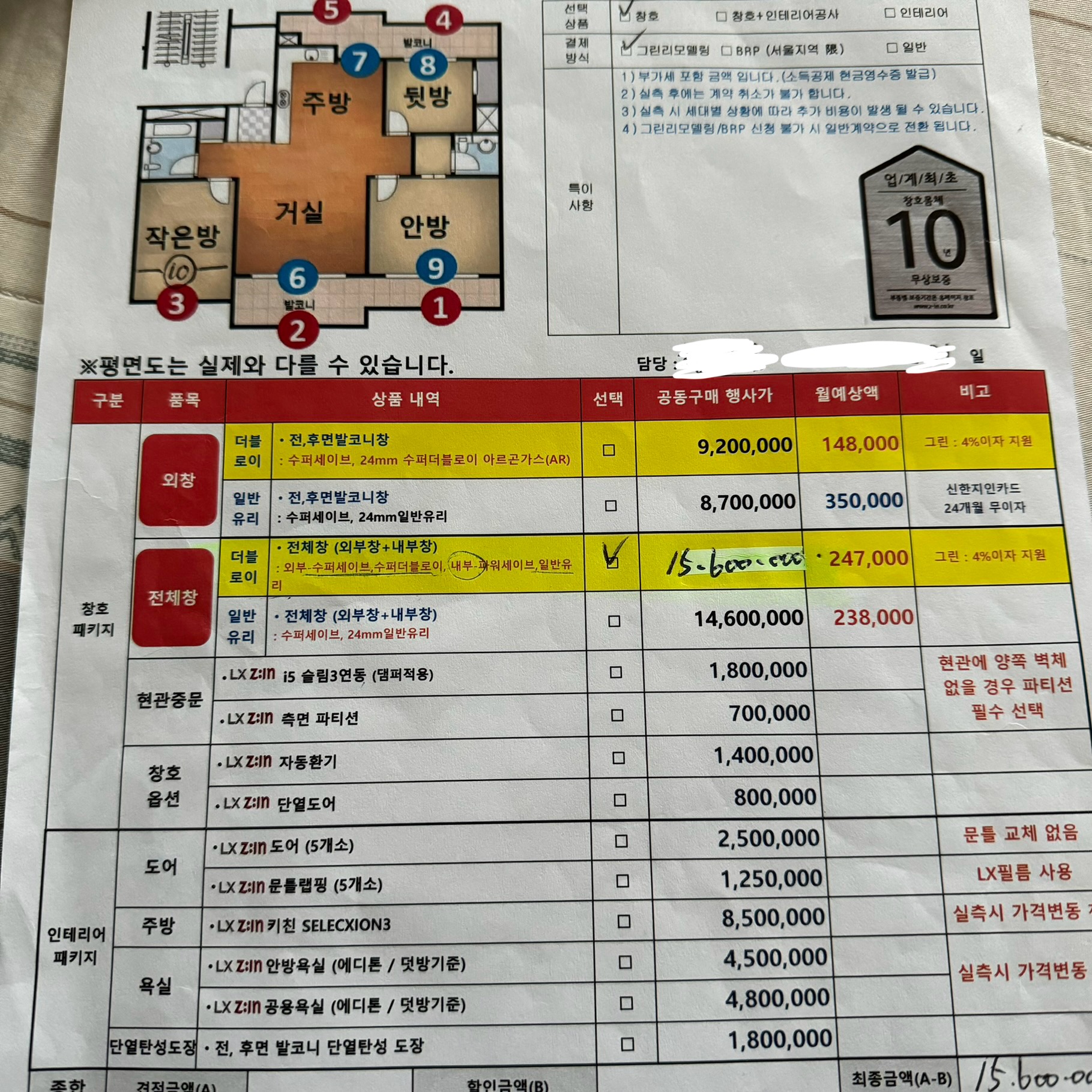 일반 소기업도 아니고 우리나라 대기업의 상표를 붙인 창호이므로, 사업자에게 해당 창호 시험성적표를 요구하시어 창호 성능상 문제가 있다면(결로가 발생했으므로 창호 제품 또는 시공상 하자일 수 있습니다)이를 지원 기관에 신고하시어, 사업자에게 공사대금 지불을 중지하는 방법을 택할 수도 있지 않을까요?