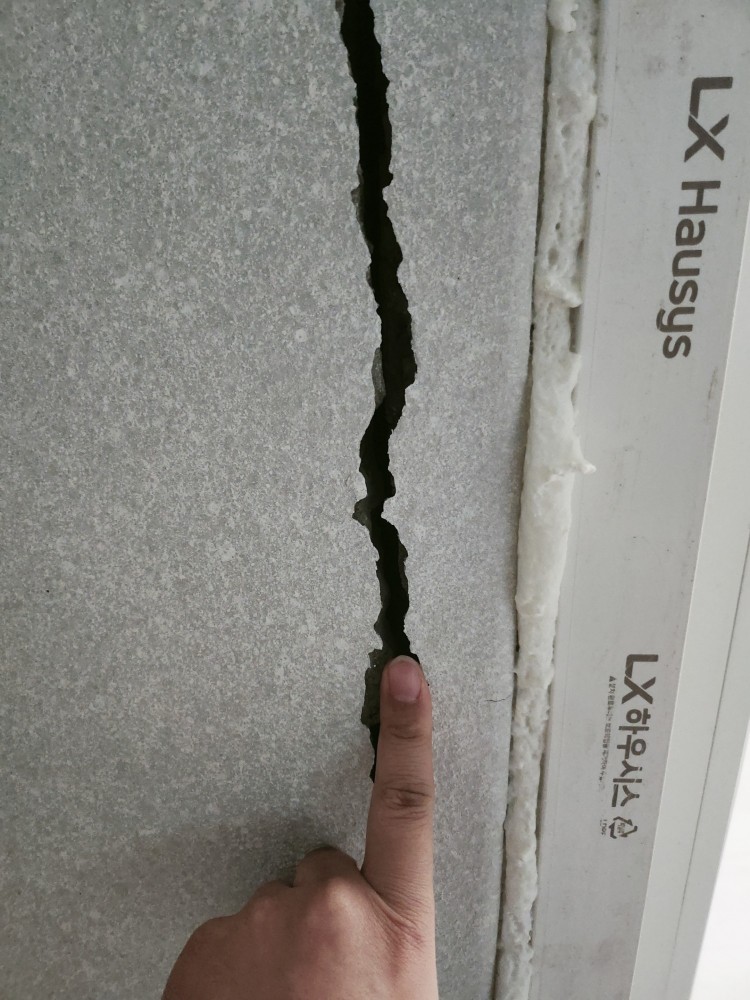 균열이 심한편이라 생각되고 이 상태로는 그냥 둘 수 없다 생각해 보수 요청하였습니다.