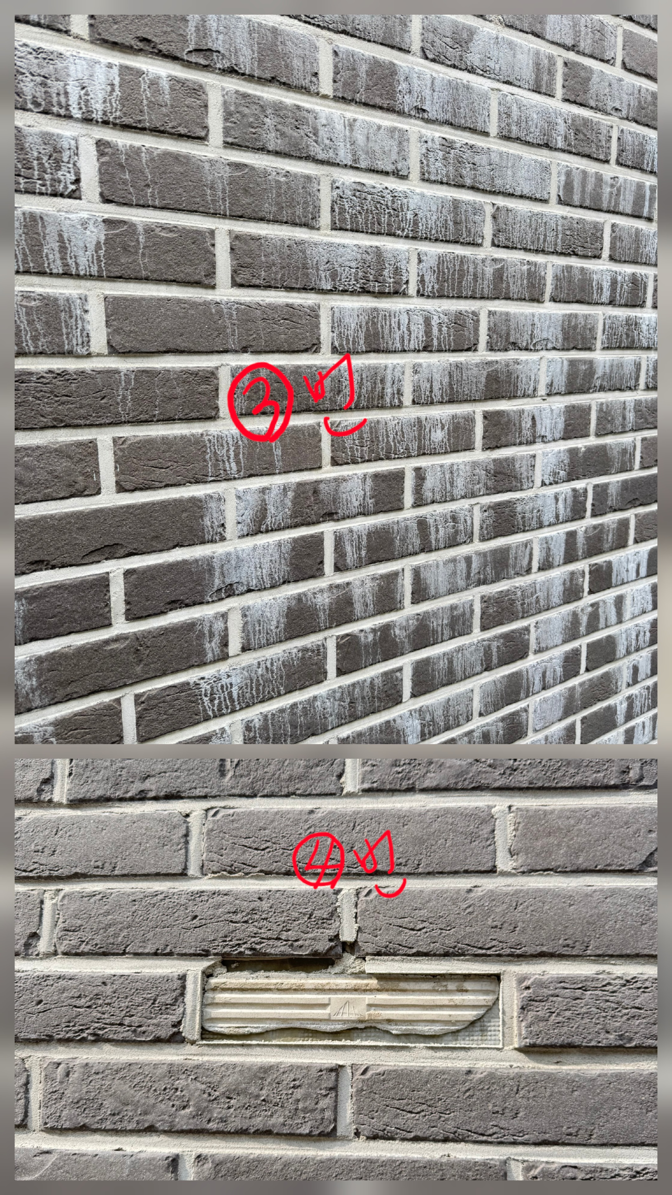 •3·4번 사진: 건물 전체적으로 시멘트물이 흘러 굳은 흔적