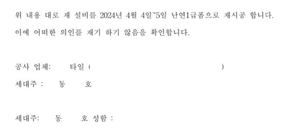 황당하게도 저에게 집주인이 공사를 하려면 어떠한 이의 제기도 하지 않는 것을 사인하라고 하네요. 일단 이것은 거절한 상태입니다.