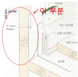 '왜 그 부분인가?'는 그 부분이 발코니 치켜올림 방수턱 홈이기 때문입니다.