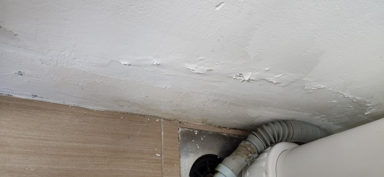 그 부분에서 도장이 들뜨는 원인은 관리자님 말씀과 같이 바닥 배수구와 우수관 주변 습도가 영향을 미쳤습니다.