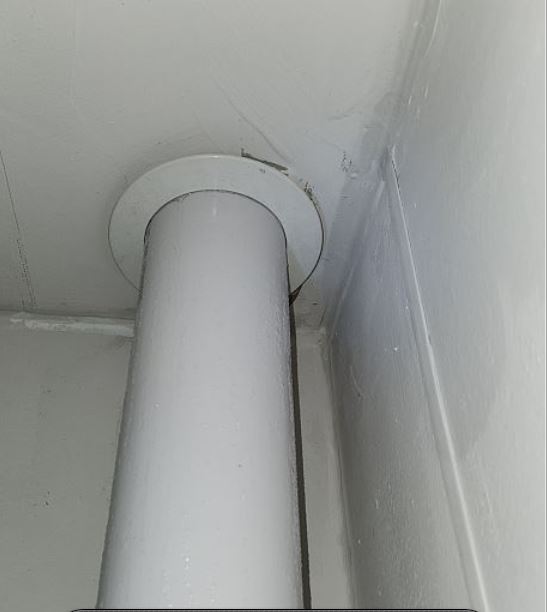 우수관 오른쪽 석고보드 상부는 약간 변색된 것이 누수에 의한 것으로 보이기도 합니다.