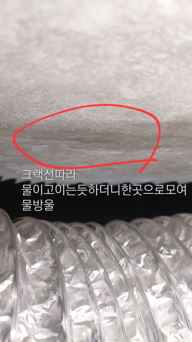 처음 발견시보다 물방울 양은 적어져서 석고보드가 젖기전에 마르고를 반복하고있어요. 날씨 영향은 아닌것같은데 이유는 희안하게 일주일에 월,화 1~2일정도만 물이 보여요. 윗집이라고 생각할수없는게
