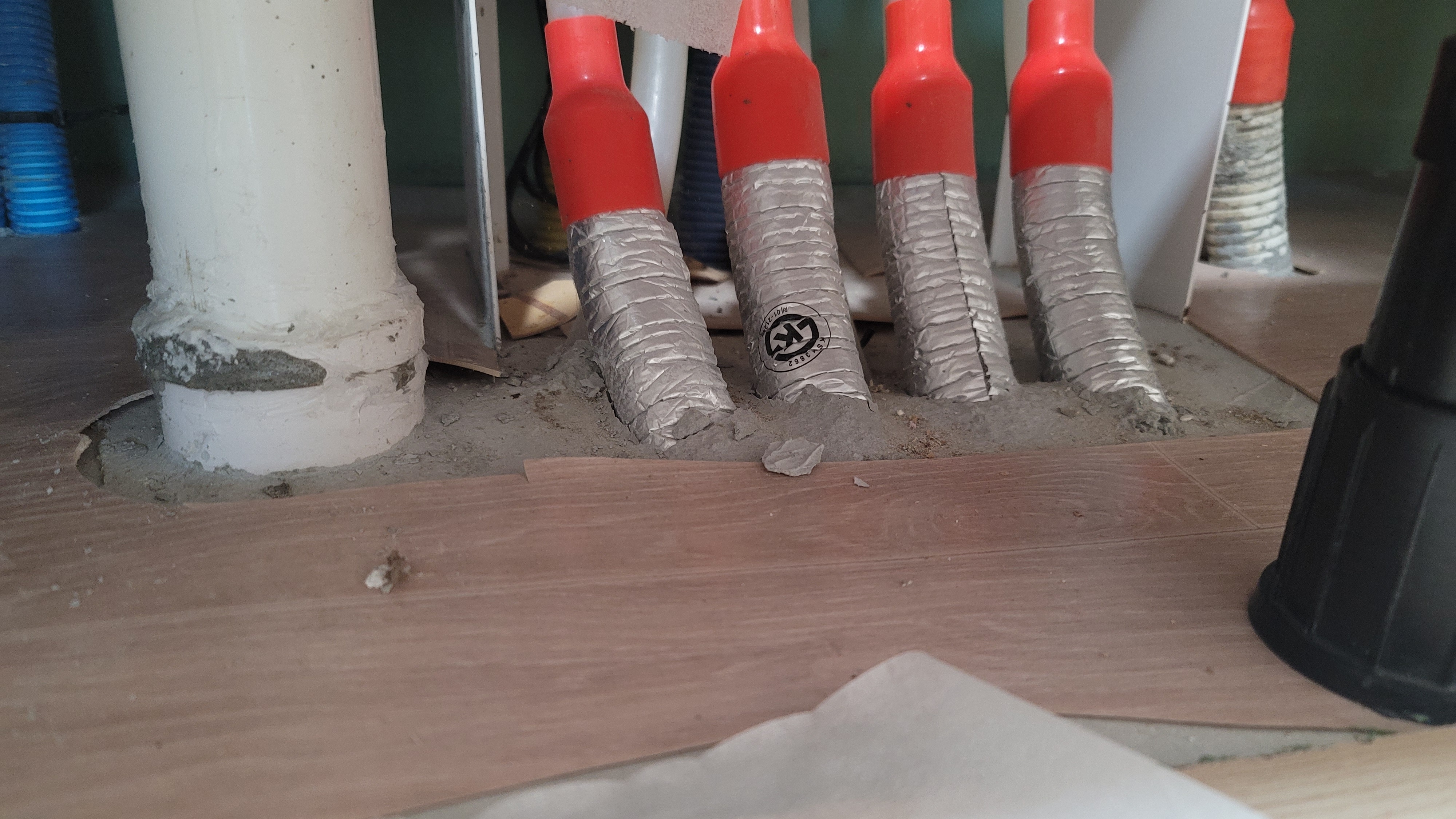 확실히 천장에서는 아무 냄새가 안납니다.. 오늘 하부장을 다시 한번 살펴보는데 난방 배관이 땅으로 묻히는 부분이 이렇게 깨져서 틈이있더라구요 이 사이로도 냄새가 새 나올수 있을까요??