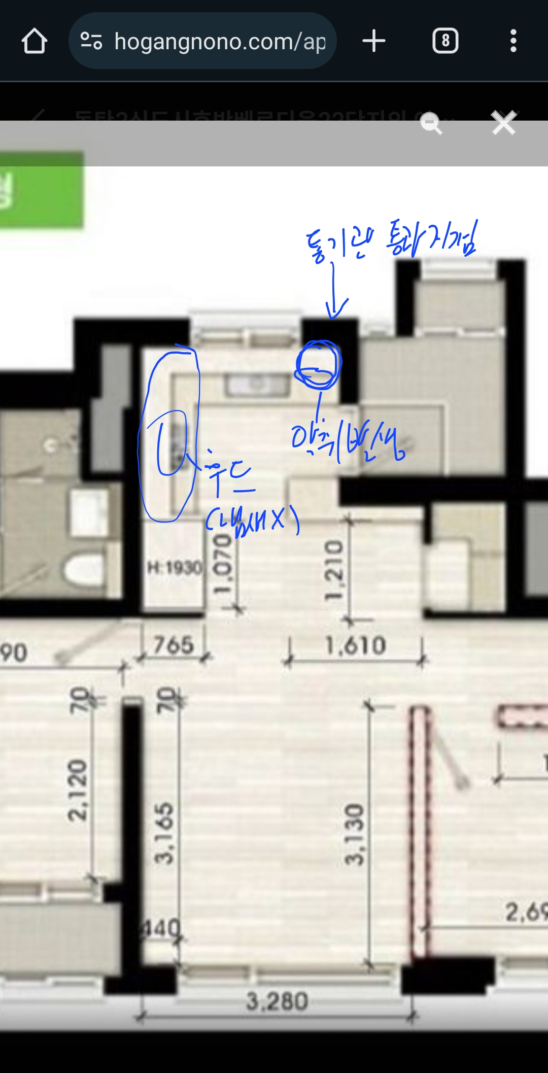 관리실에서 오늘 받은 도면 보내드립니다. 도면이 옆집기준이라 반대로 되어있네요.. 통기관하고는 반대편에 위치해있습니다