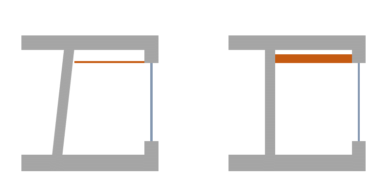 수직 균열이 중간에 끝나고 천장쪽으로 이어지는 사선 균열쪽은 기둥 보 같습니다.. (그래서 수직균열이 천장까지 안가고 중간에 끝난듯)