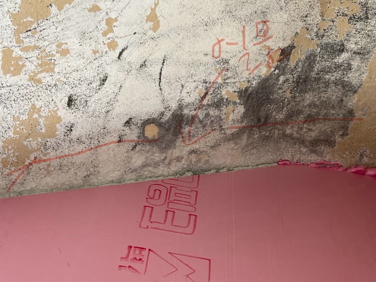 폼 쏠 때 뿌린 물인 줄 알았는데 오늘 보니 결로로 인해 천장쪽에 얼음이 만들어진 상태이고 물이 줄줄 흐를 정도로 결로가 심해서 일단 작업을 멈추었습니다.