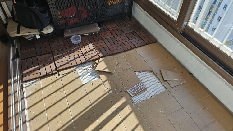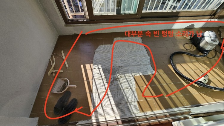 텅텅소리 나는 부분이 광범위해서 부분 보수가 아닌 타일을 모두 걷어내고 직접 시공해보려고 합니다.