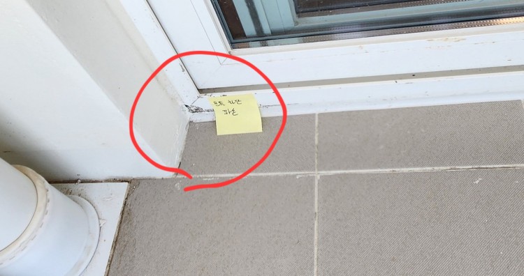 그러나 얼마뒤 확인한 결과 그냥 파손부위를 백시멘트로 뒤덮어 놓은 것을 발견하여 해당 샤시 교체를 재요청하였습니다.