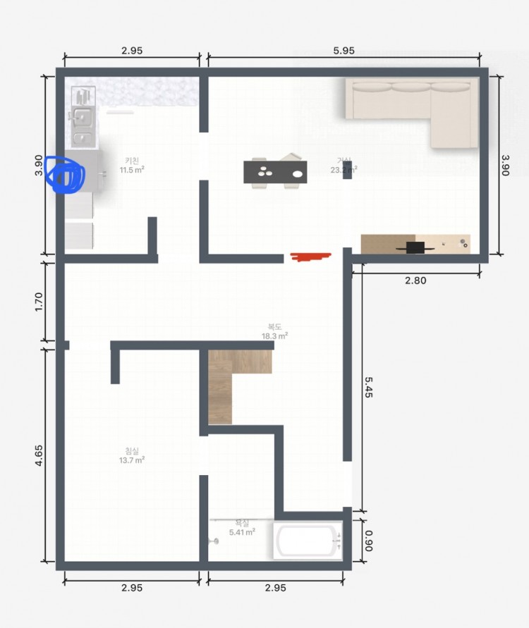 문제는 저 빨간색 부분이 딱 일자로 두께가 20센치정도만 바닥이 차갑습니다... 복도, 거실, 주방은 너무 잘 작동하구요