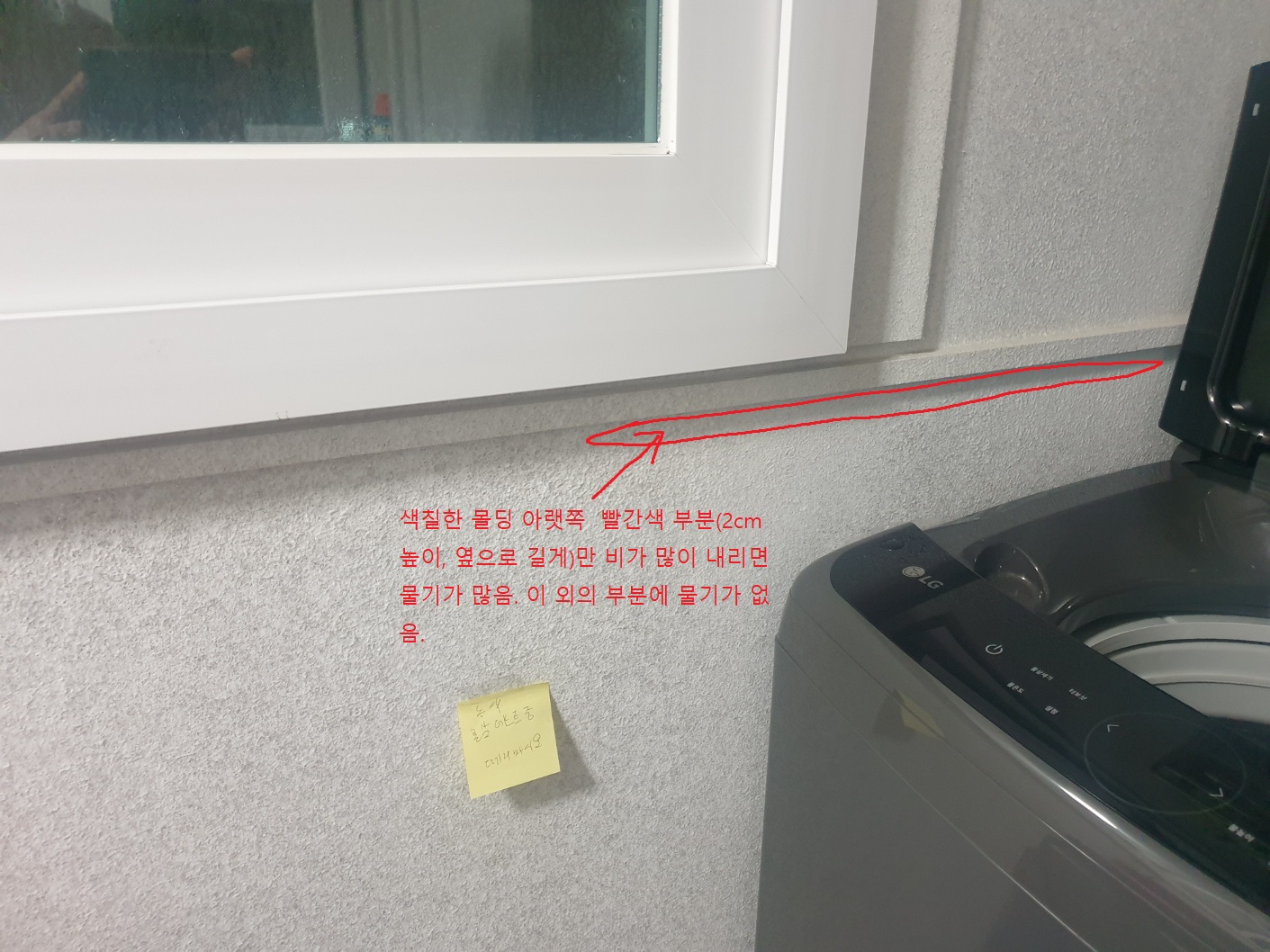-->>콘센트 연장선 몰딩한 부분 아래쪽에서만 비가 많이오면(대략 3시간 이상 비오는경우)에 물기가 있구요 (손으로 만지면 느껴집니다.)
