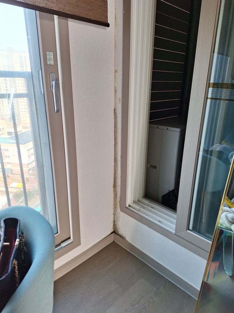 3년차 신축인데, 결로 곰팡이로 애초 민원이 많이 있었는데 공통적으로 발생하는 공간들이 똑같았다고 들었어요. 위 사진첨부한 마루도 결로 곰팡이 민원 많았던 침실입니다.