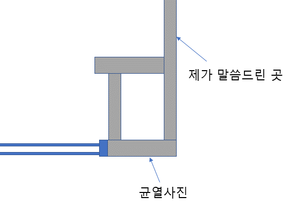 오히려 올려 주신 사진 마지막장(균열사진)의 오른쪽 벽면에 균열이 있는지를 보셔야 할 것 같습니다.
