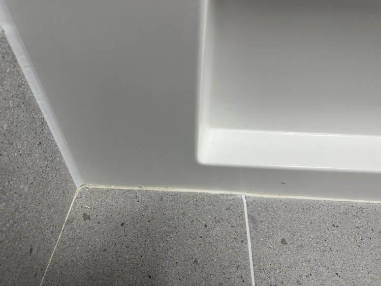 욕조와 바닥 타일 사이에 실리콘 코킹이 안되어 있는데
