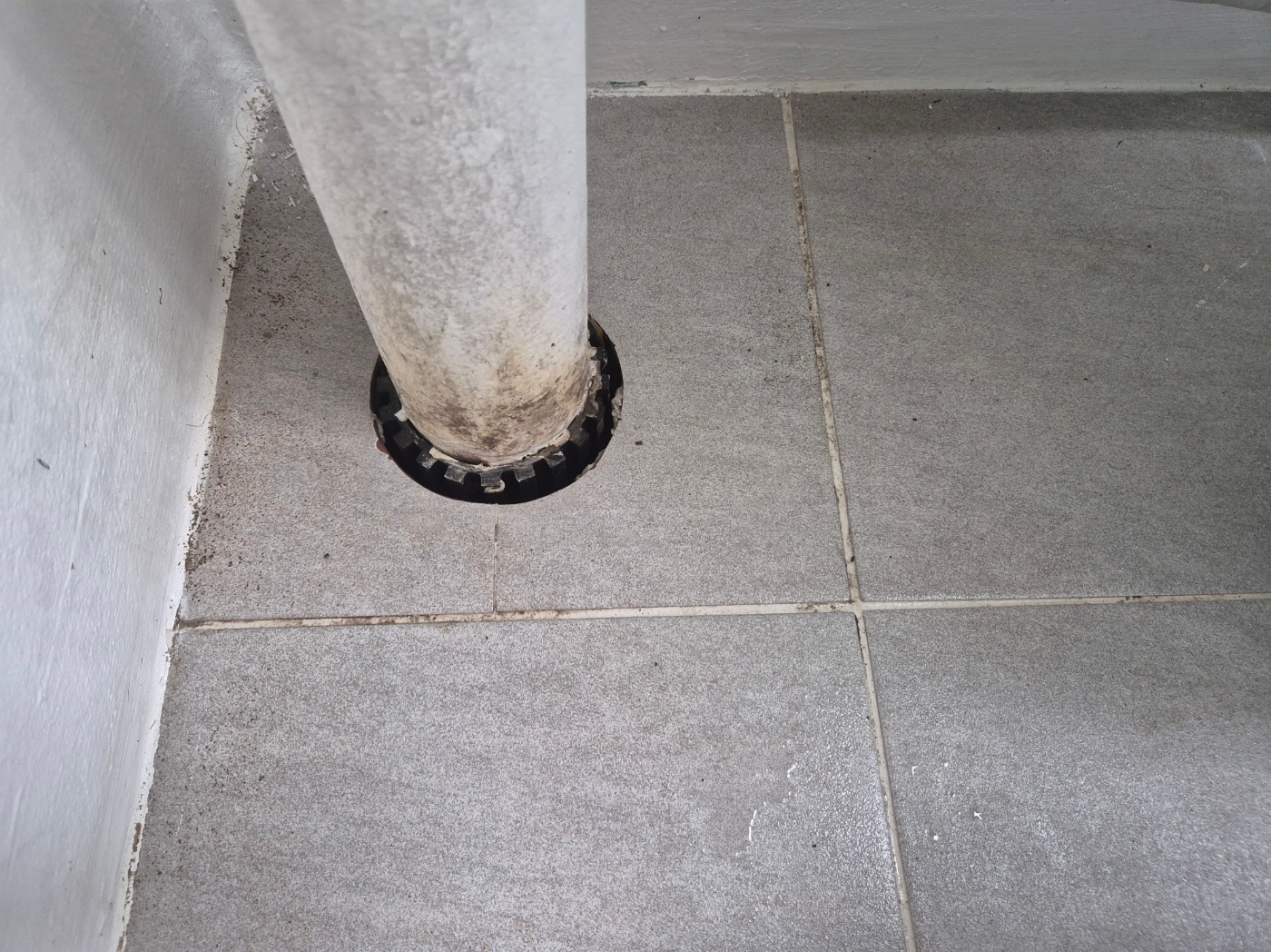 첨부드린 파일과 같이 비가 오는 날에 우수관 주위 바닥 타일이 젖고 다른 베란다 바닥 타일까지 물이 흐르는 현상이 발생합니다.