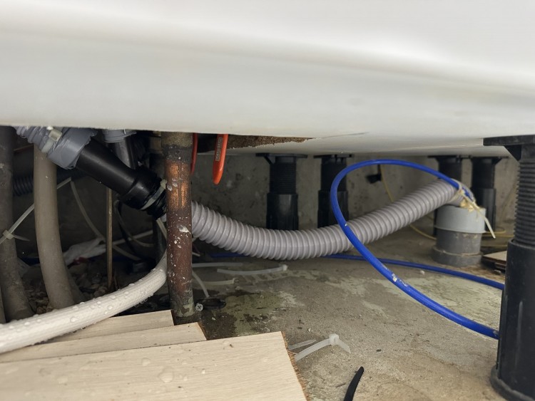 Y자 커넥터에 연결되어있는 관은 식세기 배수관입니다..!