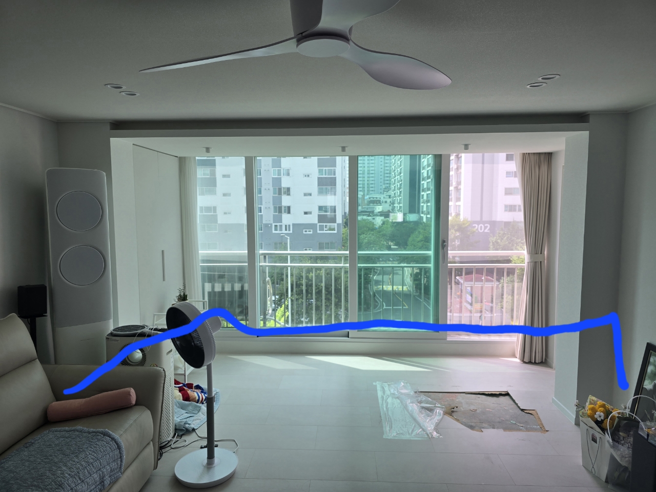 -.에어컨 설치업체는 인테리어사장님 소개로 같이 진행하였는데 이사올때부터 기존 에어컨 드레인배관이 있었던지라 건드리지않았고 에어컨 설치 후 물빠지는거만 확인했다는 의견.