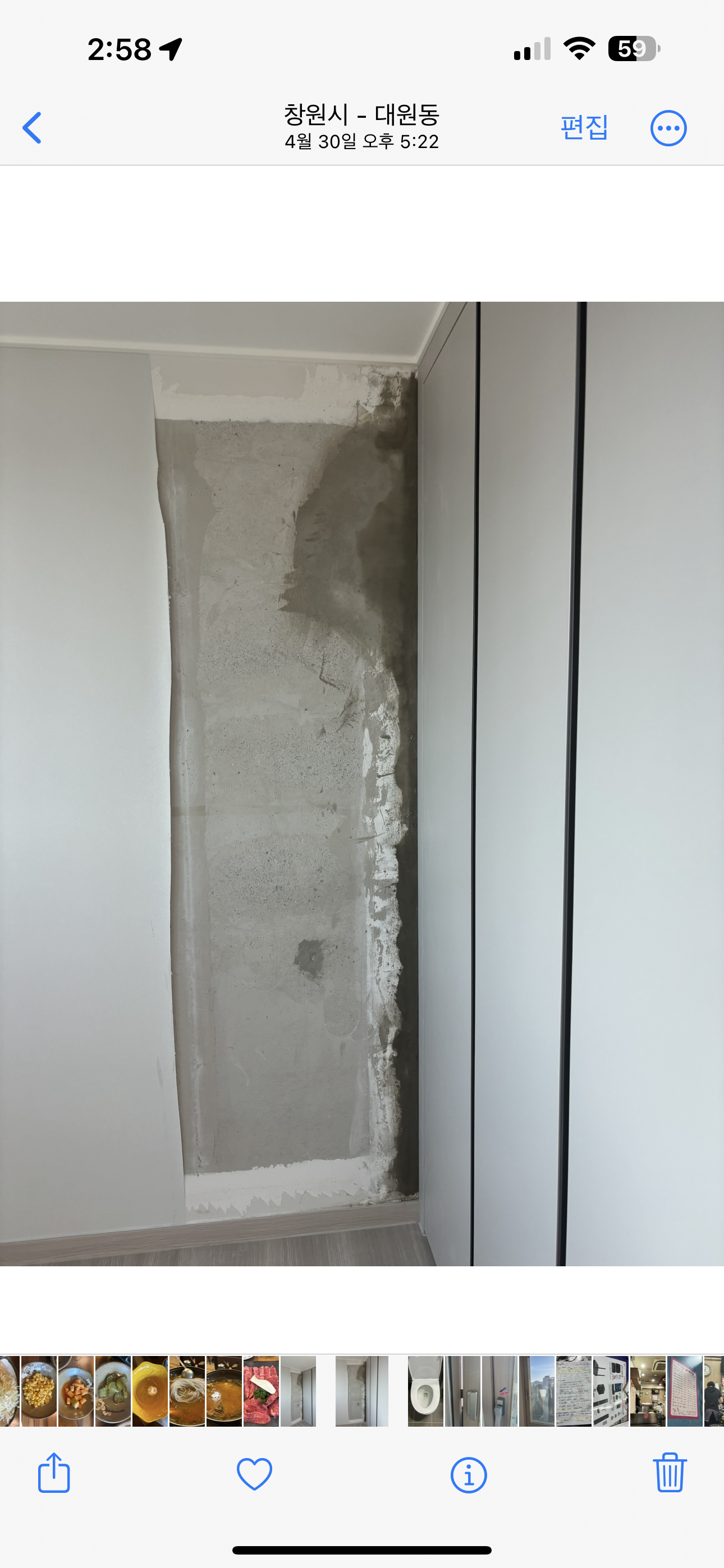 집안 전체( 주방, 드레스룸 제외) 벽면 모서리 쪽에서 곰팡이가 발생을 하였고 하자보수가 원할히 되지 않아 3달 정도 기간을 두고 우선적으로 걸레받이와 석고보드를 교체한 상황입니다. 현재 늦은 원인 파악에 의해서도 화가난 상황입니다 ㅠㅠ 피트공간 천장쪽 누수가 없는지 건설사에서 확인을 했고 없다고 한 상황입니다.