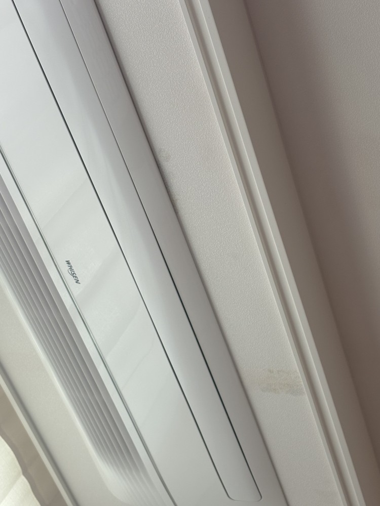 에어컨 바람의 방향이 너무 천장 쪽이라면 표면 결로에 의해 이런 흔적이 나타날 수 있습니다.