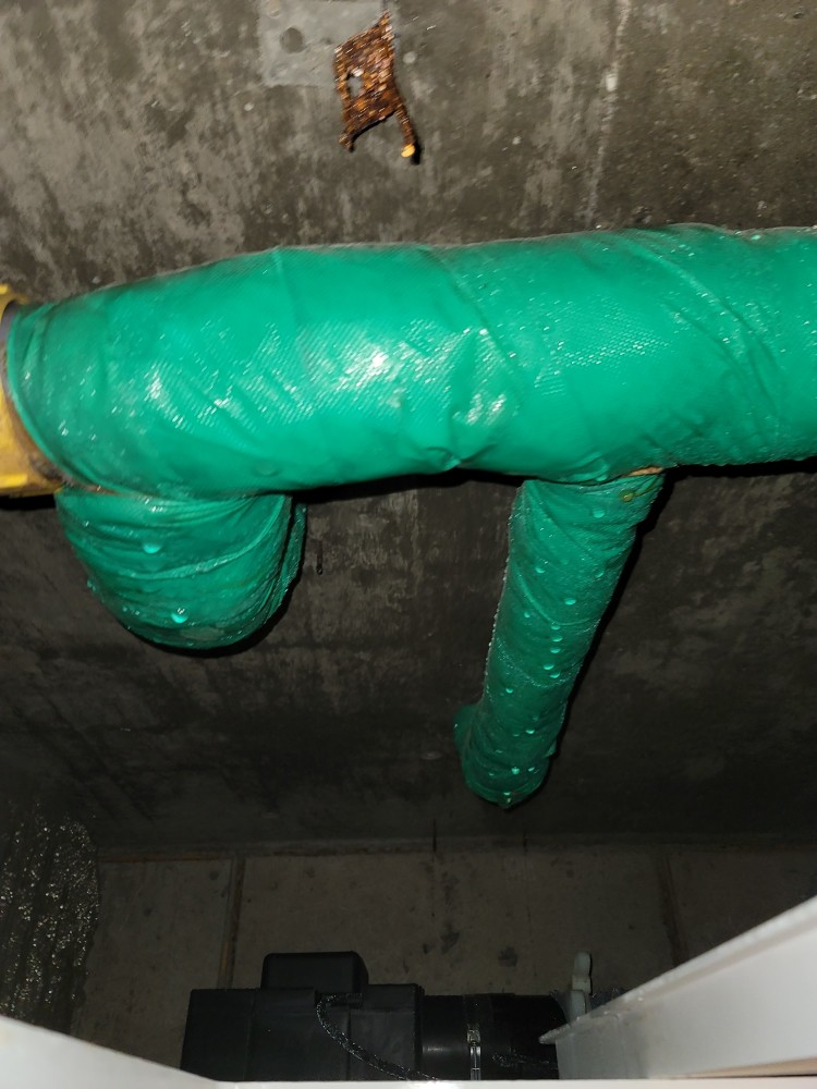 5)1년4개월 후(2023년 1월 경) 물소리 들려 smc점검구 열어 확인하니, 동일 위치 다시 누수 되어서 윗집에 연락하니 물 새는 곳으로 추정되는 화장실 사용하지 않겠다함.