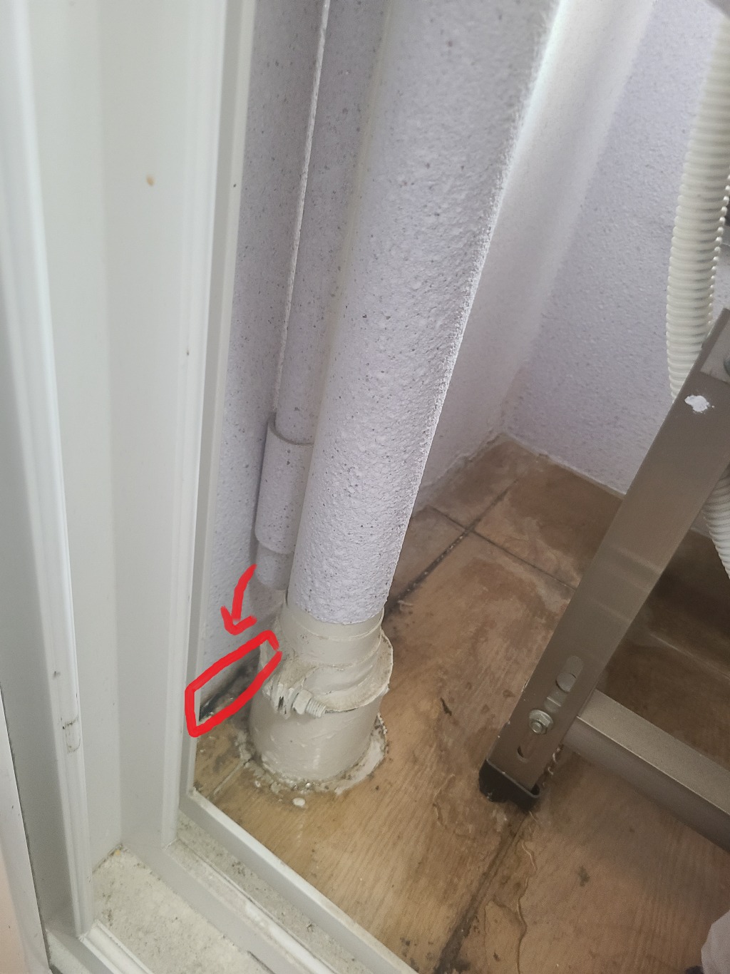 아래 사진과 같이 에어컨 드레인기가 실외기실 배수구가 아닌 가스관 쪽으로 설치가 되어있다고 합니다.