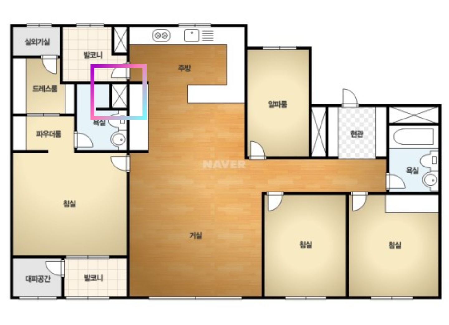 하지만 문제는 이 것을 제대로 보수하기 위해서는 욕실 쪽에서의 PD벽을 철거해서 배관을 들어 낸 다음 보수를 해야 하는데.. 이 벽을 철거없이 배관을 살펴 보려고 뚫은 구멍 때문에, 벽을 철거해야 하는 상황에 빠진 경우라서.... 아이러니한 상황인데요..