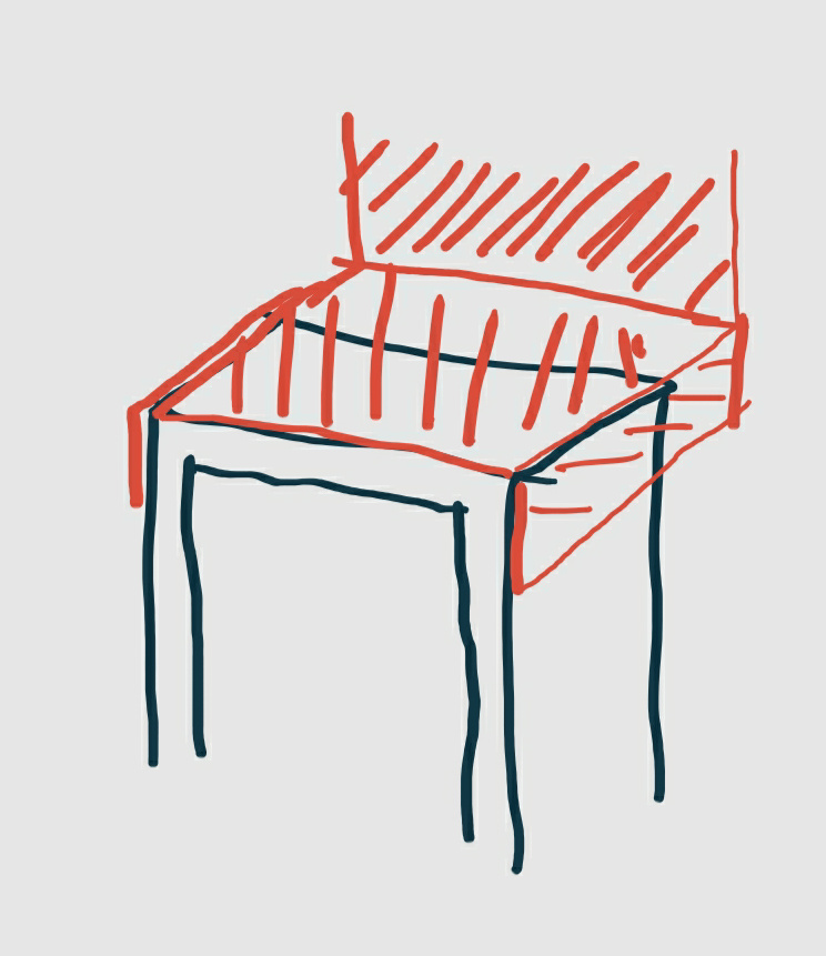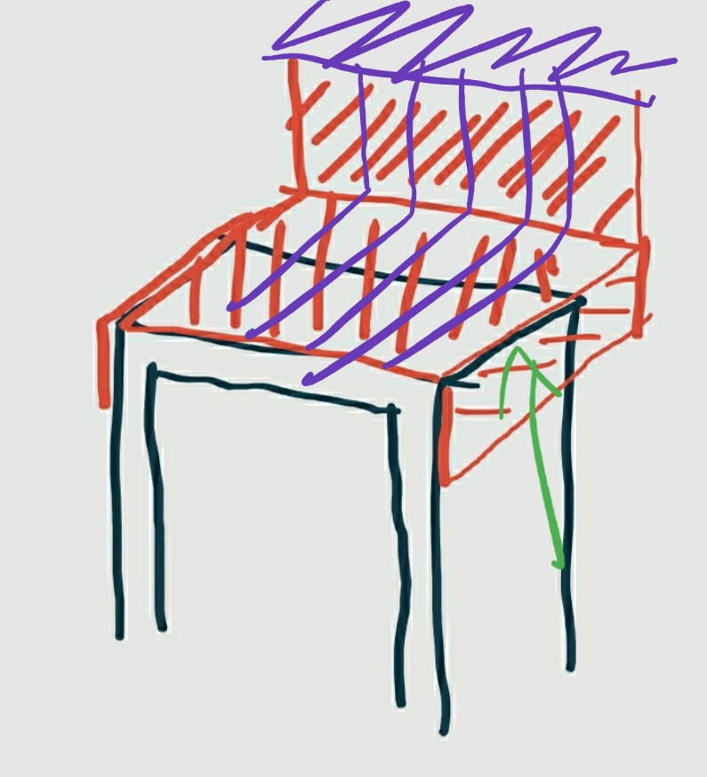 예전 건물에서 슁글 부위를 철거하고나니  까만색 부위가 남았고,  그 뒤에 벽돌을 두 세 개 쌓아서  그 위에 빨간색으로 철판 절곡하여 두겁을 시공한 것 같습니다.  모식도에서 파란색으로 그린 것이  실제 사진에서 노란 계열의 스타코이고요.  메쉬는  벽돌 위에까지 감았던 걸로 기억합니다.. 초록색은  옥상 우레탄 방수,  노란색은 PF 보드,  주황색은 라임스톤 입니다.
