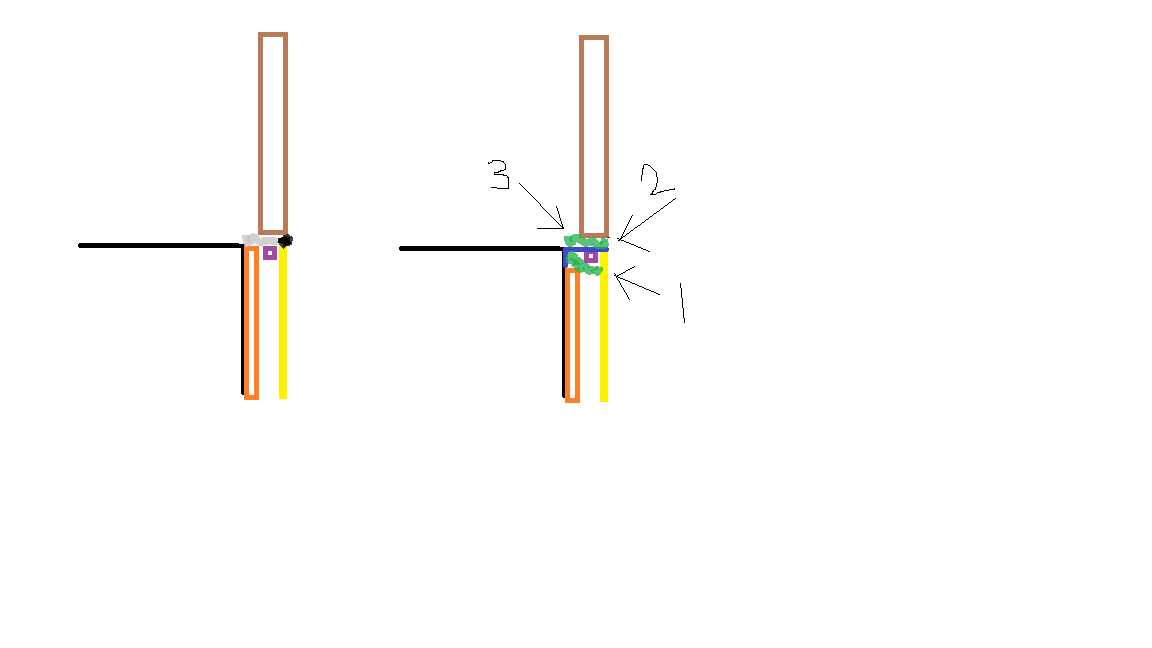 그러면 징크 등의 철물을 ㄴ 자로 시공하되  철물-골조, 철물-창호 사이에는 비경화실리콘(초록색)으로 접착시키고,  철물 위엔 보라색은 방수테이프,  그 위엔 다시 초록색의 실리콘 떡칠을  그림처럼 시공하면 될까요?ㅠㅠ