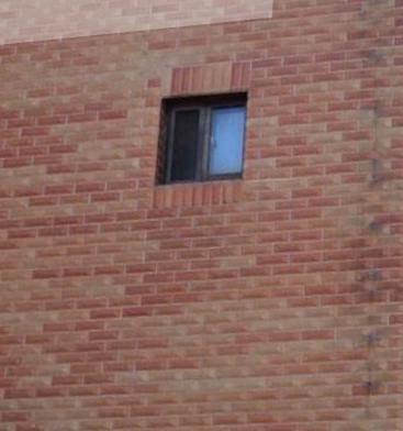 4층 코너창입니다.  내부에서 바깥 석재가 보이고  건물의 모서리 부위(파란색) 이 내부에서도 보입니다.... 감사합니다