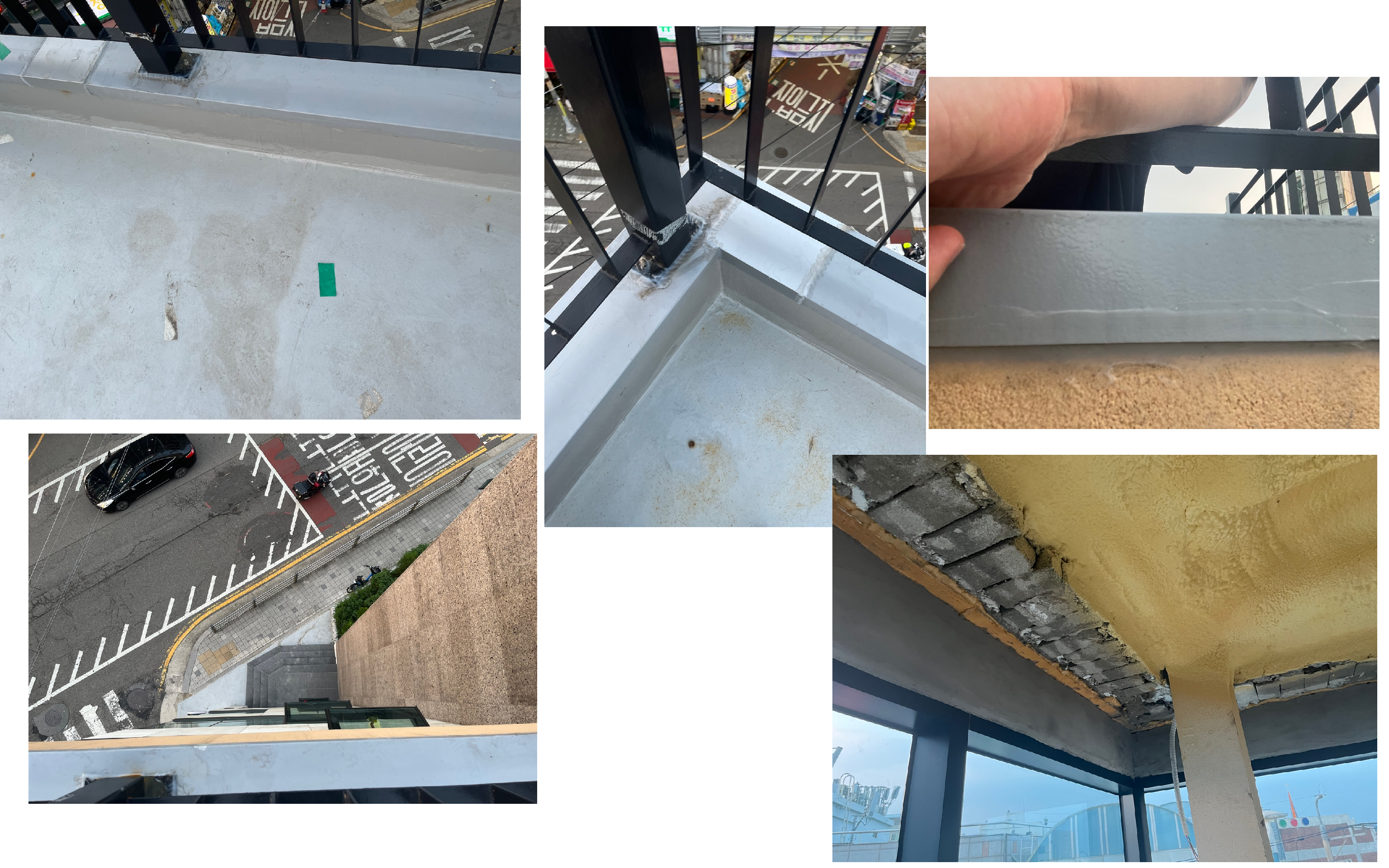 그리고 예상과는 다르게, 옥상 파라펫이 돌출된 형태인데요.. 이 돌출을 위해서 콘크리트까지 같이 돌출되어 있는 상태일까요? 아니면 벽은 수직으로 일직선인데, 마감재만 돌출시킨 것일까요?