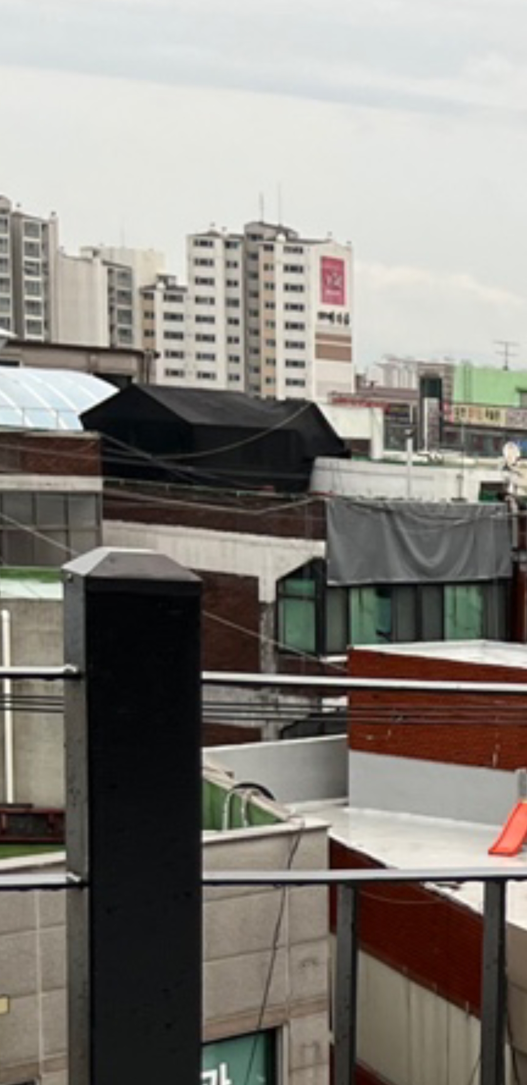 4층 모서리 부분에서, 내부 사진과 외부 사진입니다.