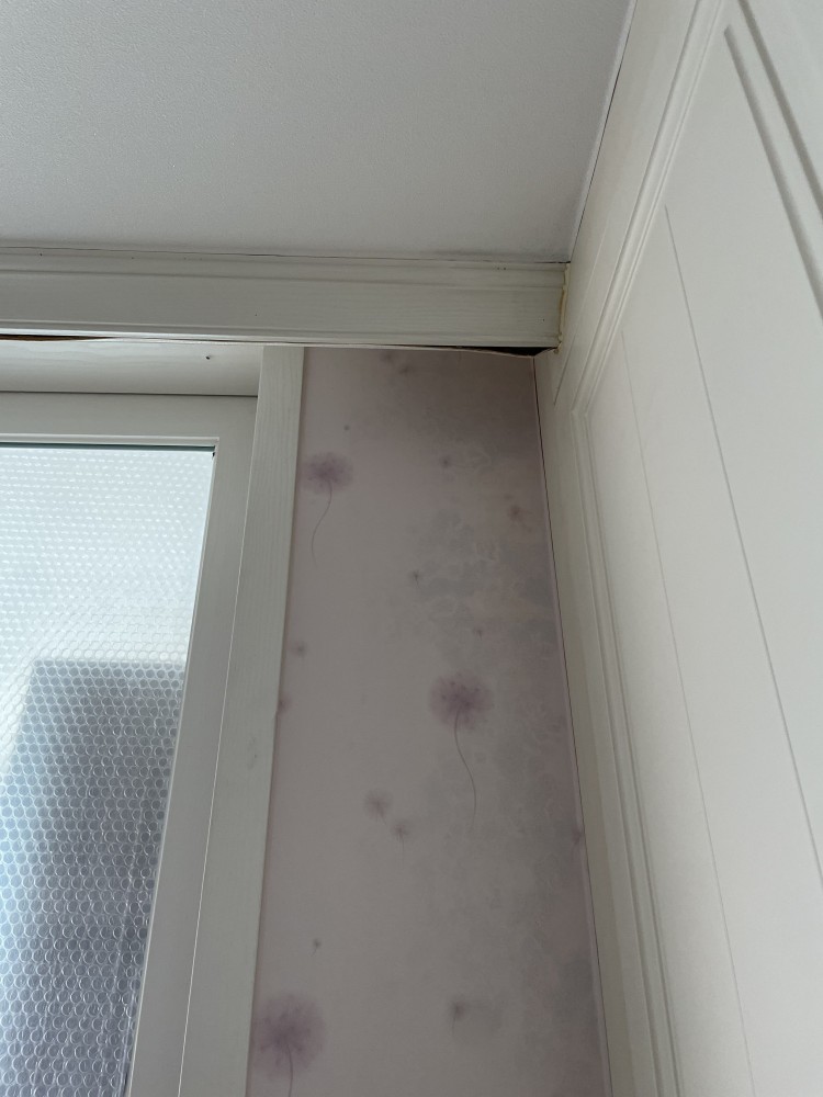 이런 경우로 물이 스며들어 몰딩부분은 팽창되고