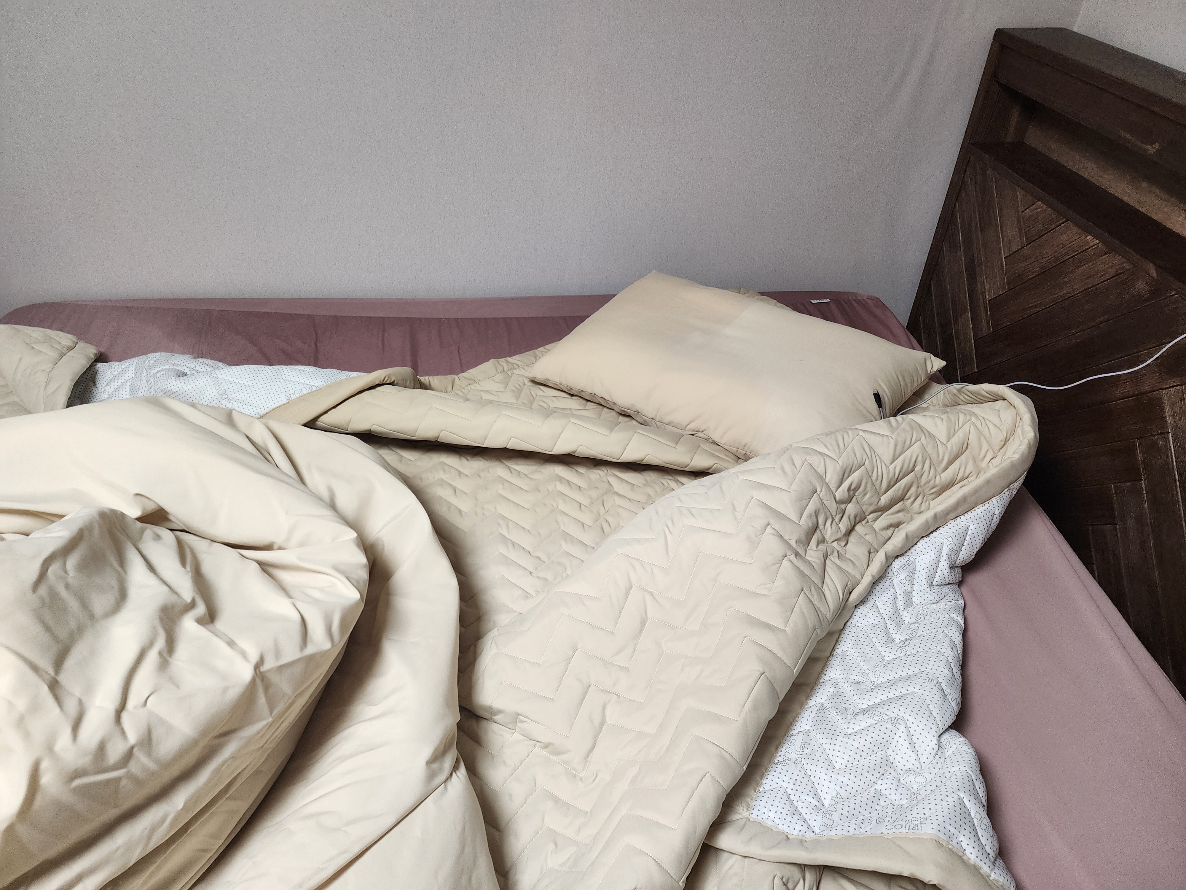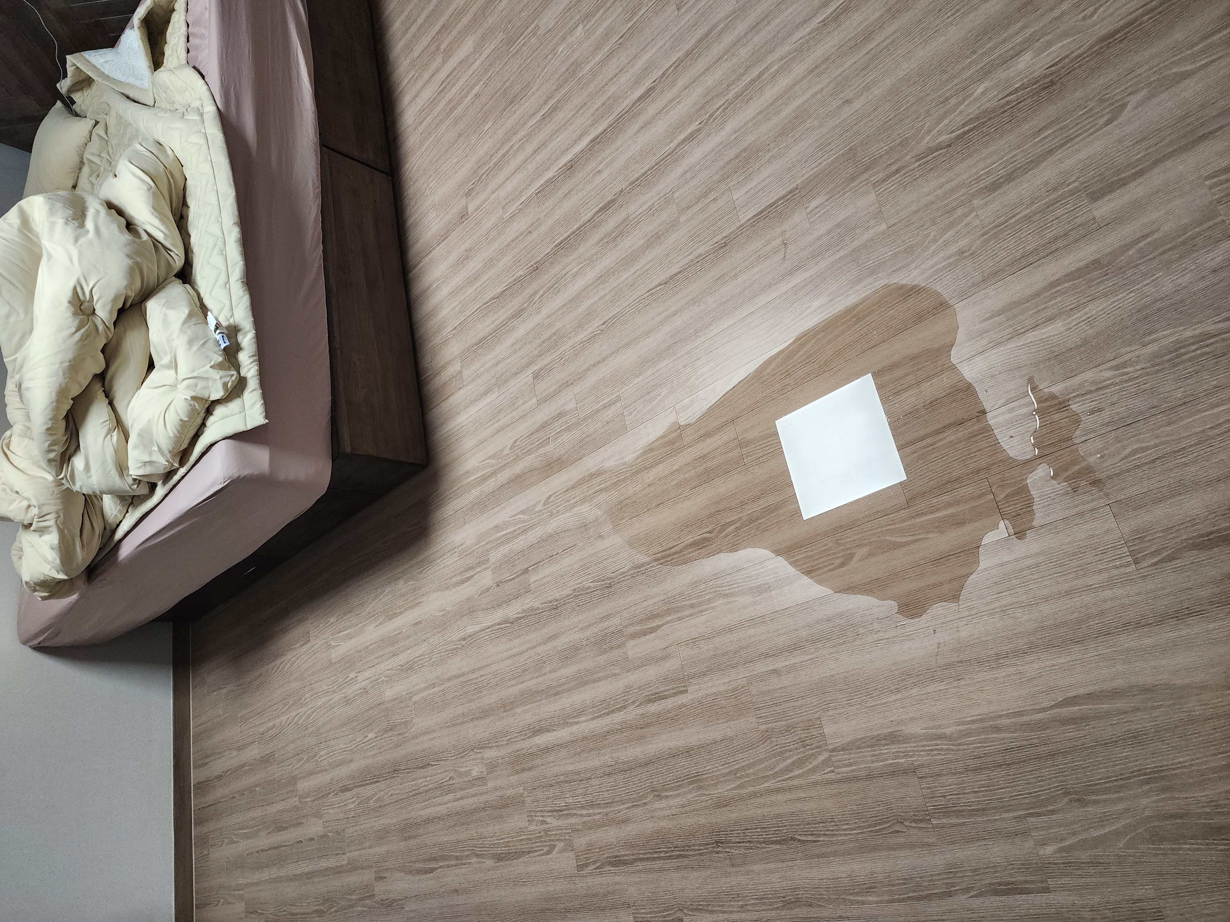 그런데 오늘 퇴근하고 집에 와보니 안방 바닥에 물이가득하고 침대, 벽지, 이불 다 젖어있었습니다.