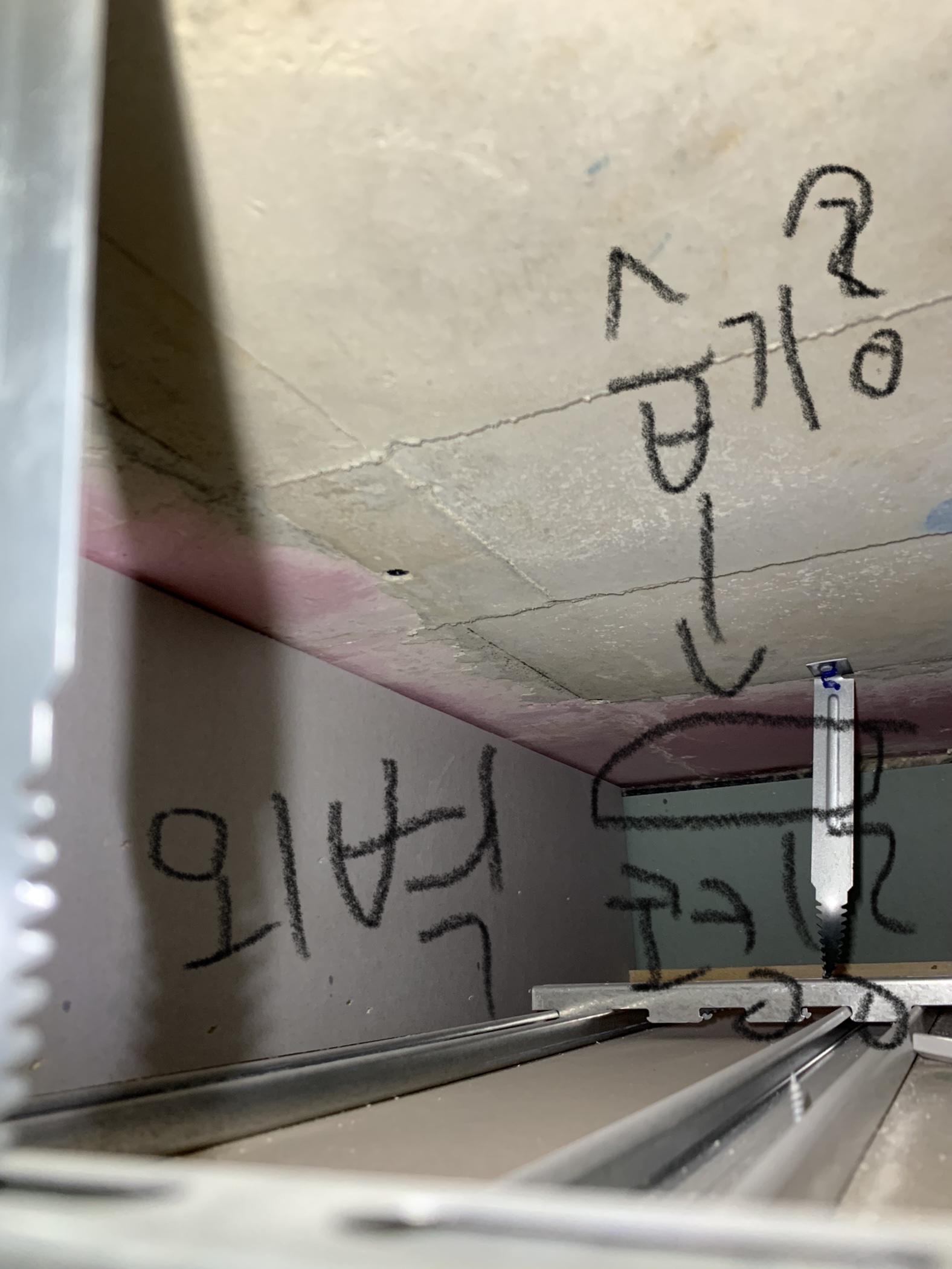 아기방 천장 최대한 보이는것들은 찍어봤습니다. 안방은 as후 냄새가 안나는줄 알았는데 안방 시스템에어컨 커버도 열으니 천장에 똑같은 냄새가 진동을 합니다.